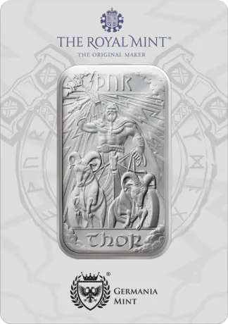 Objevte nadčasovou hodnotu stříbra s 1 oz stříbrným slitkem Thor | Královská mincovna. Tyto pečlivě vyrobené tyčinky, vyrobené z jemného stříbra 999,9/1000, představují eleganci a bezpečnost. Tyto stříbrné slitky o hmotnosti 31 1035 g, vyráběné jednou z nejdůvěryhodnějších rafinérií, Královskou mincovnou, jsou ideální pro investory, kteří chtějí diverzifikovat nebo rozšířit své portfolio drahých kovů.