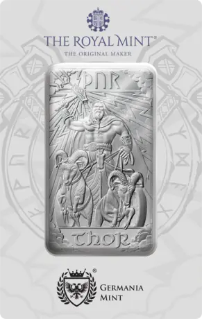 Objevte nadčasovou hodnotu stříbra s 10 oz stříbrným slitkem Thor | Královská mincovna. Tyto pečlivě vyrobené tyčinky, vyrobené z jemného stříbra 999,9/1000, představují eleganci a bezpečnost. Tyto stříbrné slitky o hmotnosti 311 035 g, vyráběné jednou z nejdůvěryhodnějších rafinérií, The Royal Mint, jsou ideální pro investory, kteří chtějí diverzifikovat nebo rozšířit své portfolio drahých kovů.