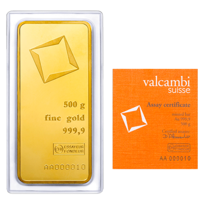 Investiční zlato ve formě litého slitku. Na každé investiční cihle nebo slitku jsou vyraženy údaje – logo vydavatele Valcambi Suisse, hmotnost, ryzost kovu, pečeť kvality a výrobní číslo. Cihlička je číslovaná. Dodáváno s certifikátem původu a Dokladem o nabytí.